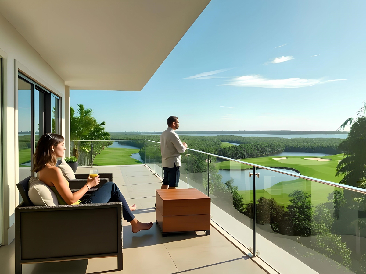 Private balcony overlooking lush greenery and fairways